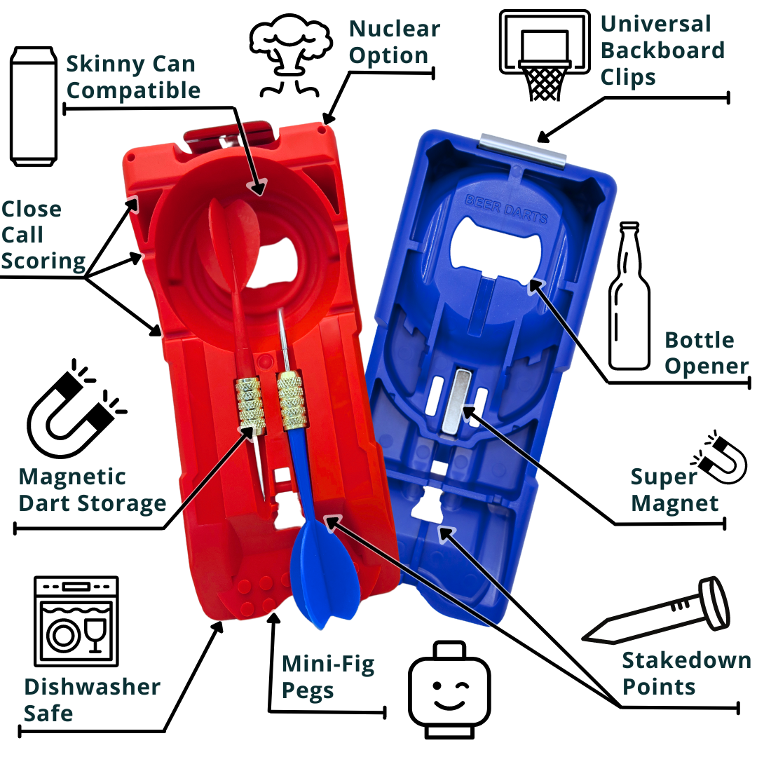 Beer Darts SetTo be honest, I was nervous buying this game because I figured darts... Drinking... This is not going to end well for me, but let me tell you, this became my newest favorite drinking game within a week of receiving my set. I took it up into the mountains where my best friends lives just to play a few rounds in the park up there. LET ME TELL YOU that two dudes slamming beers on a Saturday night had the community swarming around us like I was the NBA playoffs. Though I was hammered through the whole experience, I remembered how much fun it was kill-shotting every person that wanted to play. I only wish I had more sets for more beers. Love this game and I know you will too. 🍻⛰️